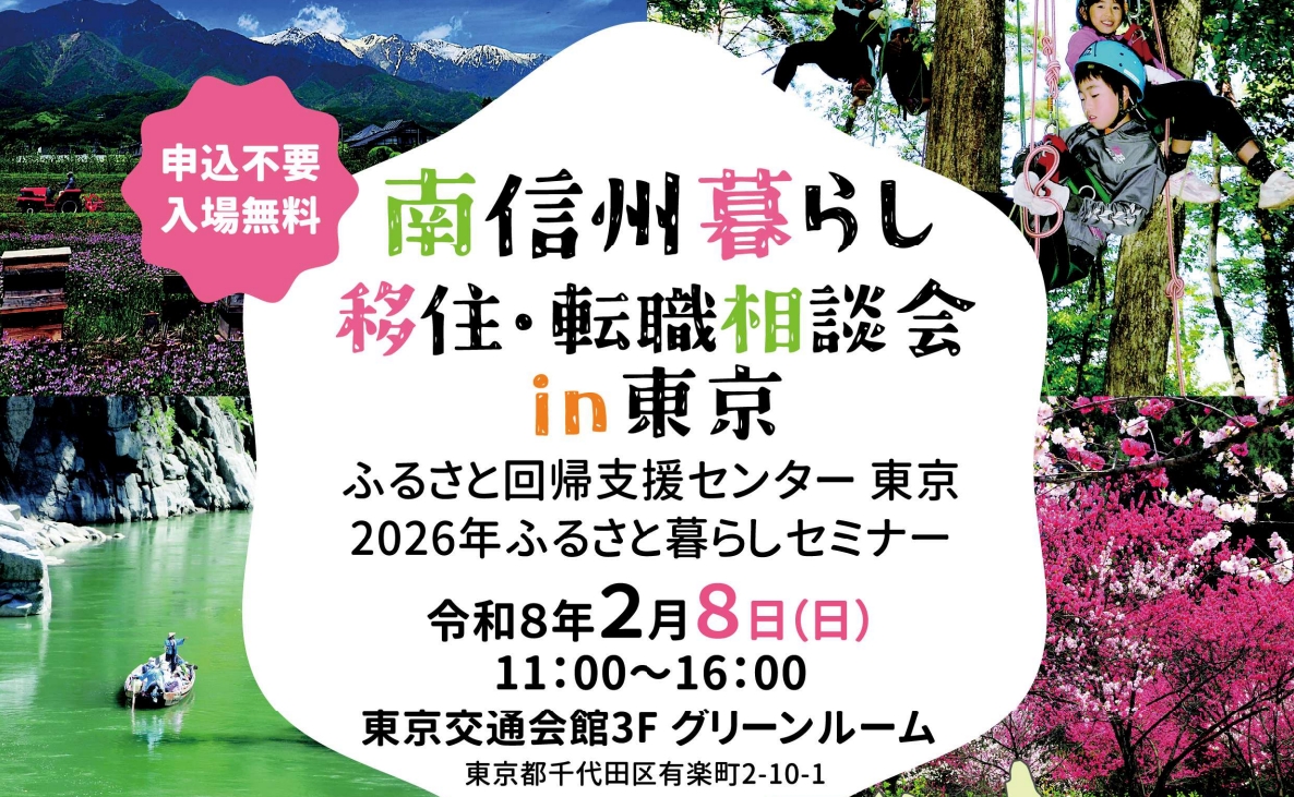 「南信州暮らし移住・転職相談会in東京」2026年2月8日(日)開催します!